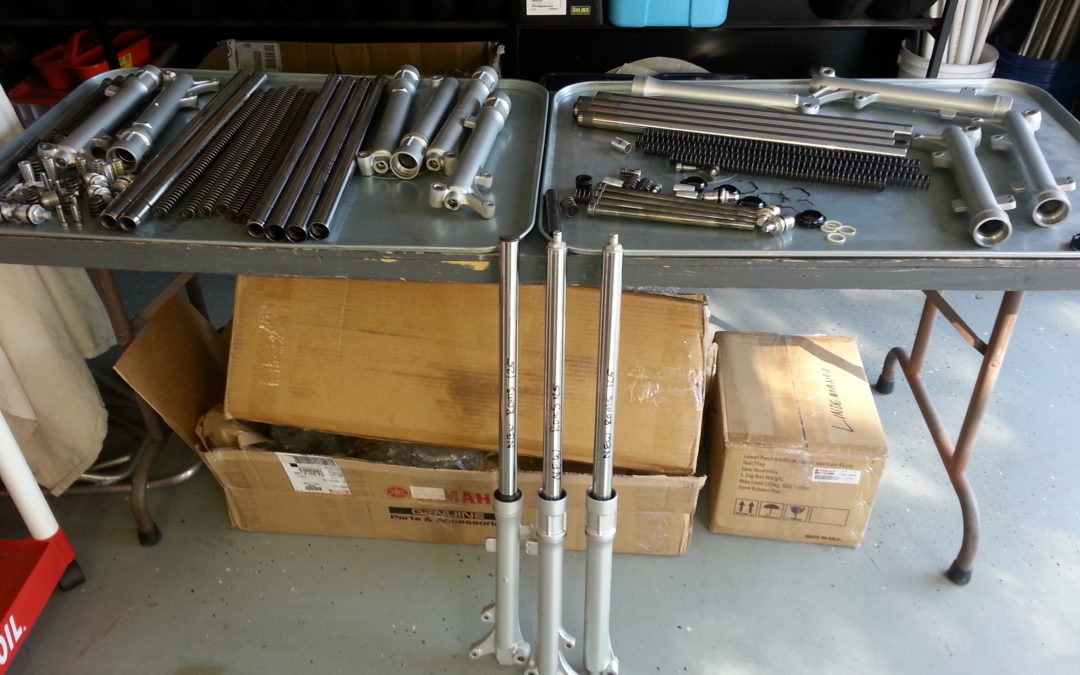 The Rich Oliver Mystery School has a lot of Yamaha TTR’s for training you how to ride better.  Rich is always getting more of them. Lindemann Engineering upgrades and maintains their suspension. LE friend Roland came over on Saturday to help, now I just have to put them back together.