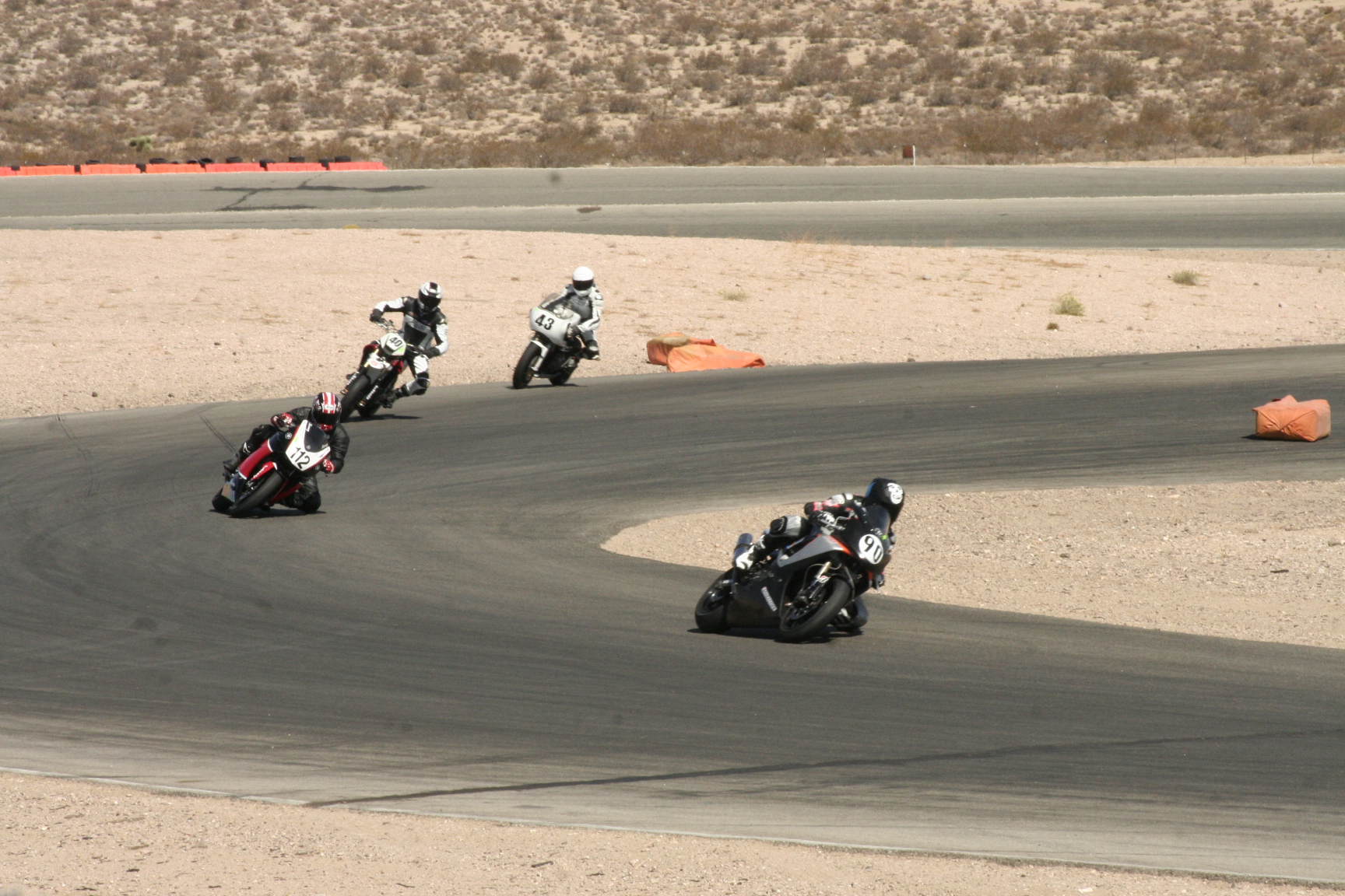 Bracket racing is based on your best lap time. Â If you go faster than the time you pick you get DQ out of your race and moved into the next bracket. Â This means you will have people to battle with because you are all doing nearly the same lap times. Â I’m the red/white/black 250 Ninja #112. Â I passed the SV650 in front of me. Â The big dirt bike behind me is a 500 cc or so. Â I think the old bike at the back is a 1000 twin. Â Two of them out ran me to the finish line and we all had a blast.