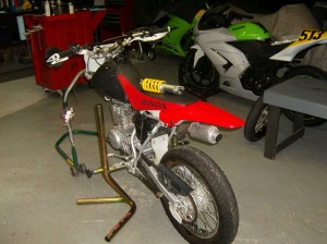 The “eXhausted Racers” won the M1GP 24 Hour XR 100 Class last year. This year they have a faster bike and have added me to their rider list. Lindemann Engineering has finished with the shock and has started on the forks.
