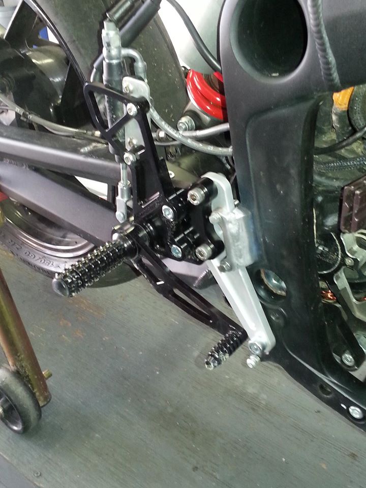 Then in his race he got bummed off track and crashed. Not much damage but he needed the broken frame tab welded. He did not know a welder and he thought the weld repair would take up the suspension work time.