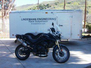 The Triumph Tiger has a non-adjustable cartridge fork. It’s under sprung and the damping curve is wrong. The correct spring rate was easy. The correct high speed damping was not too hard to work out. But what to do about the low speed damping took a few tries.