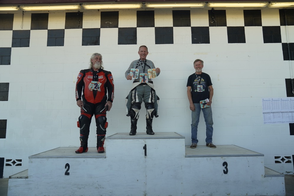 I set a new PB of 1.31.39 on the SV650 in the CTD Ironman Heavy race at Willow. My old PB was 1.31.65 Wayne, Ed and I battled in the middle of the 20 lap race. Fun note, Wayne has yellow novice number plates but he is no novice.