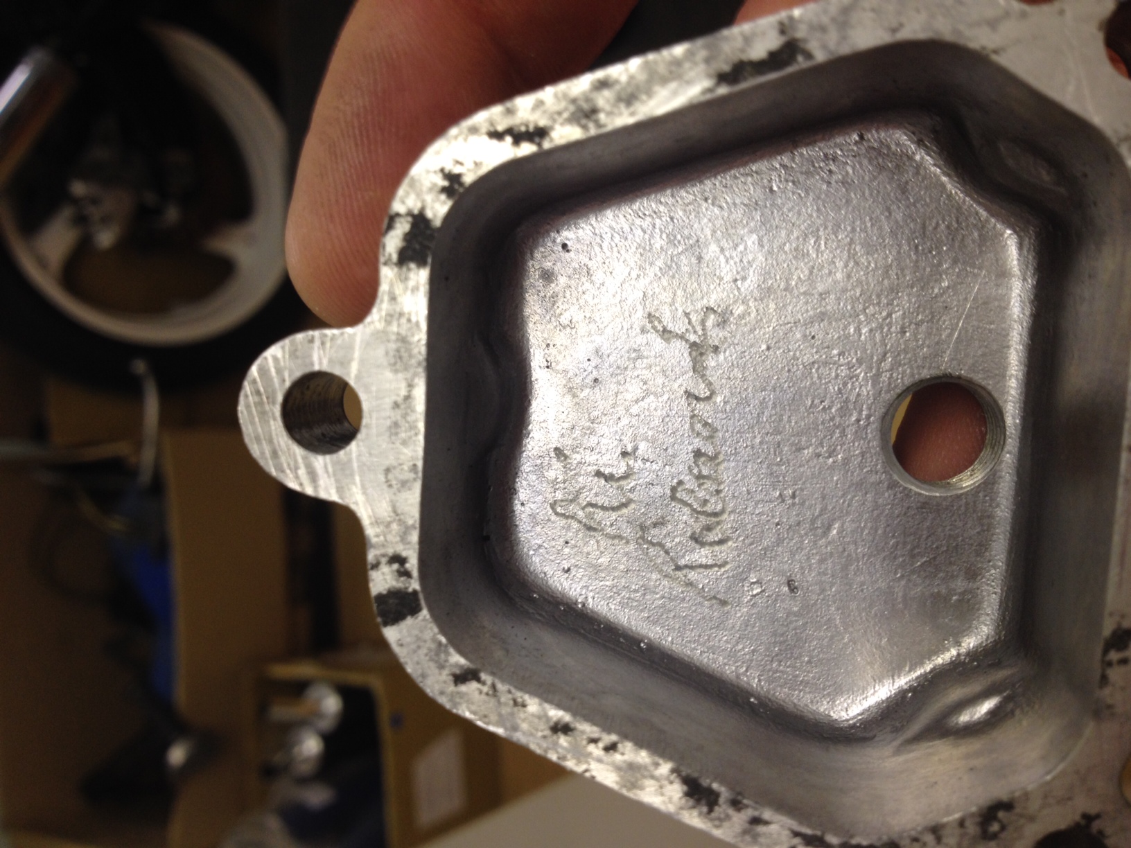 Remember the guy in England who bought my ‘90 TZ250? He got another one from over here. The name on the crank is Jeff Bratton, RIP. This is the 2,523 press together crank of about 5,000 that he rebuilt. Inside the oil pan where the screen goes is a note “Hi Roland.” It’s a message to Roland Cushway, one of the few people who is sure to clean the screen most people don’t even know is there.