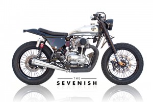 It’s a full competition dirt track set up that’s super light and handles extremely well. It’s planted. The seating position is very forward, right at the base of the tank. There’s a lot of ground clearance. The tires are dirt track racing spec. “The Sevenish spins up the tire accelerating in first gear, loves to back into turns and slides into stop signs. It’s really really fun to ride,” says Woolie. With only about two-ish people in the world that can attest to that, we’ll take his word for it.