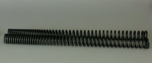 This sounds nice and comfortable and it is if you are sitting on a coach. But you are riding a motorcycle with suspension that moves fast near the top of it’s travel and slow near the bottom. You want to spend most of your time near the top so the wheels can get out of the way of the bumps. A spring that gives up the best part of the travel as soon as you sit on the bike is not what we want.