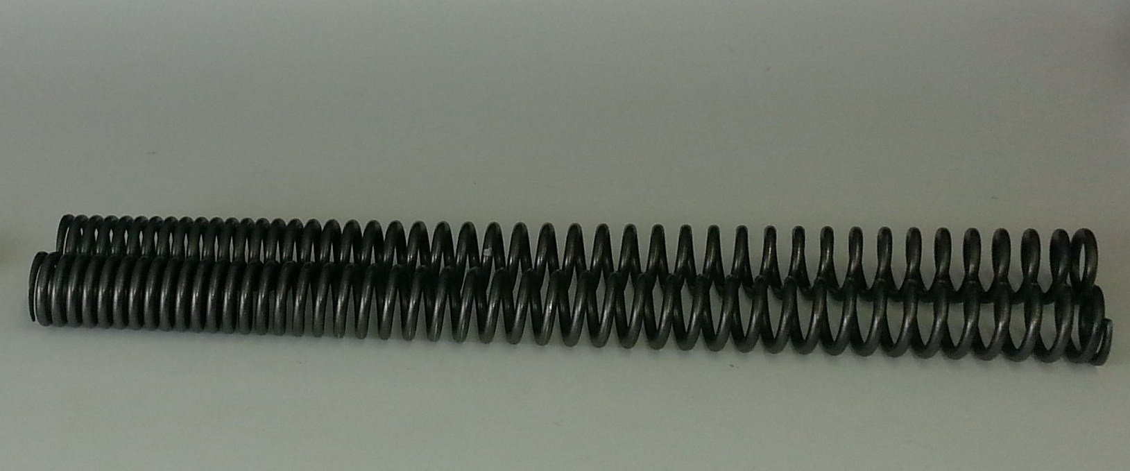 A progressively wound spring starts out weak and gets stronger as you compress it. A straight rate spring gets stronger at the same rate as you compress it. A straight spring with a rate of 100 lbs will compress one inch when you place 100 lbs on it, two inches with 200 lbs and so on. A similar progressive spring will start with a rate of 75 lbs, when that’s used up the stronger rate of 150 lbs takes over.