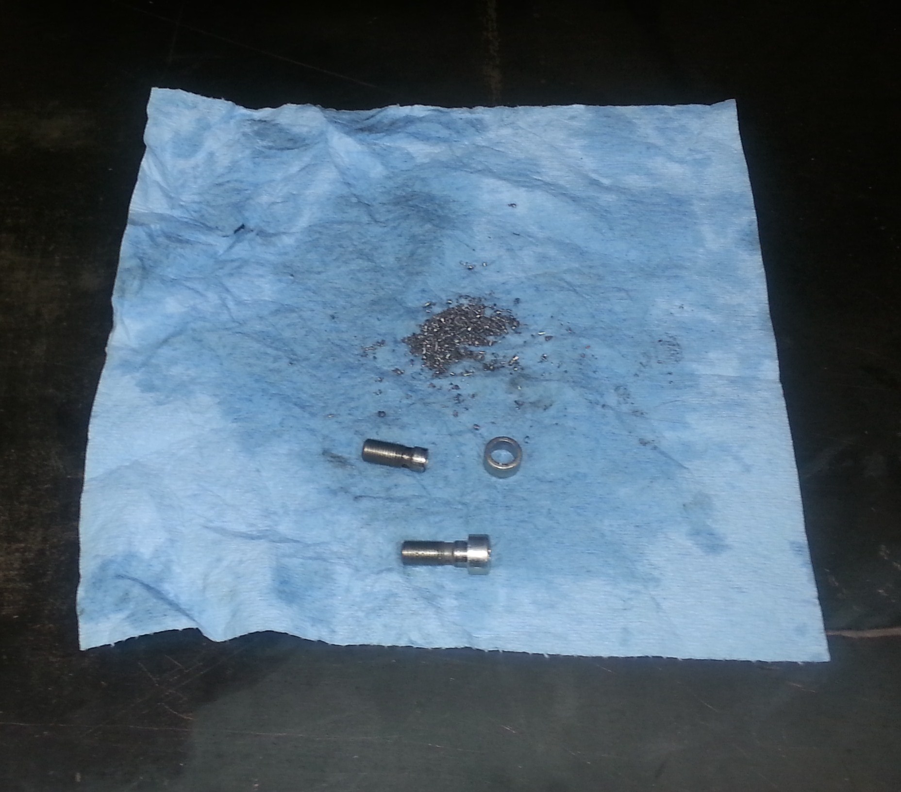 Growing up in Hawaii, I had to deal with a lot of stuck bolts. There are two fork banjo bolts in this photo. The one at the bottom is intact. It holds the cartridge rod to the bottom of the fork. Both of these were over tightened.
