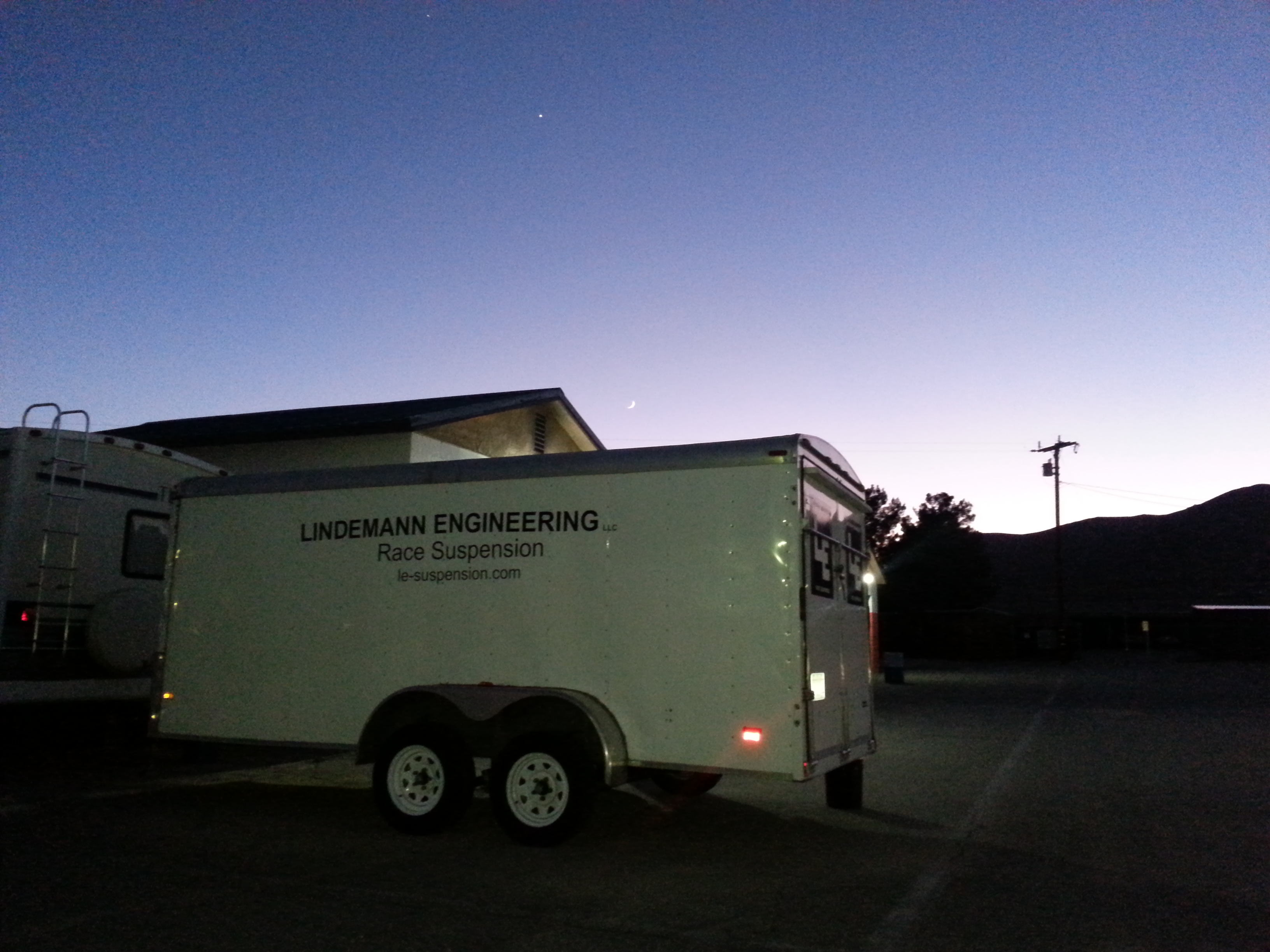 This photo was taken last Thursday at 8:32 pm. I held the phone at a 45 degree angle. Using this info as well as the position of the Crescent Moon and two Planets, tell me where Lindemann Engineering was set up for a weekend of racing.