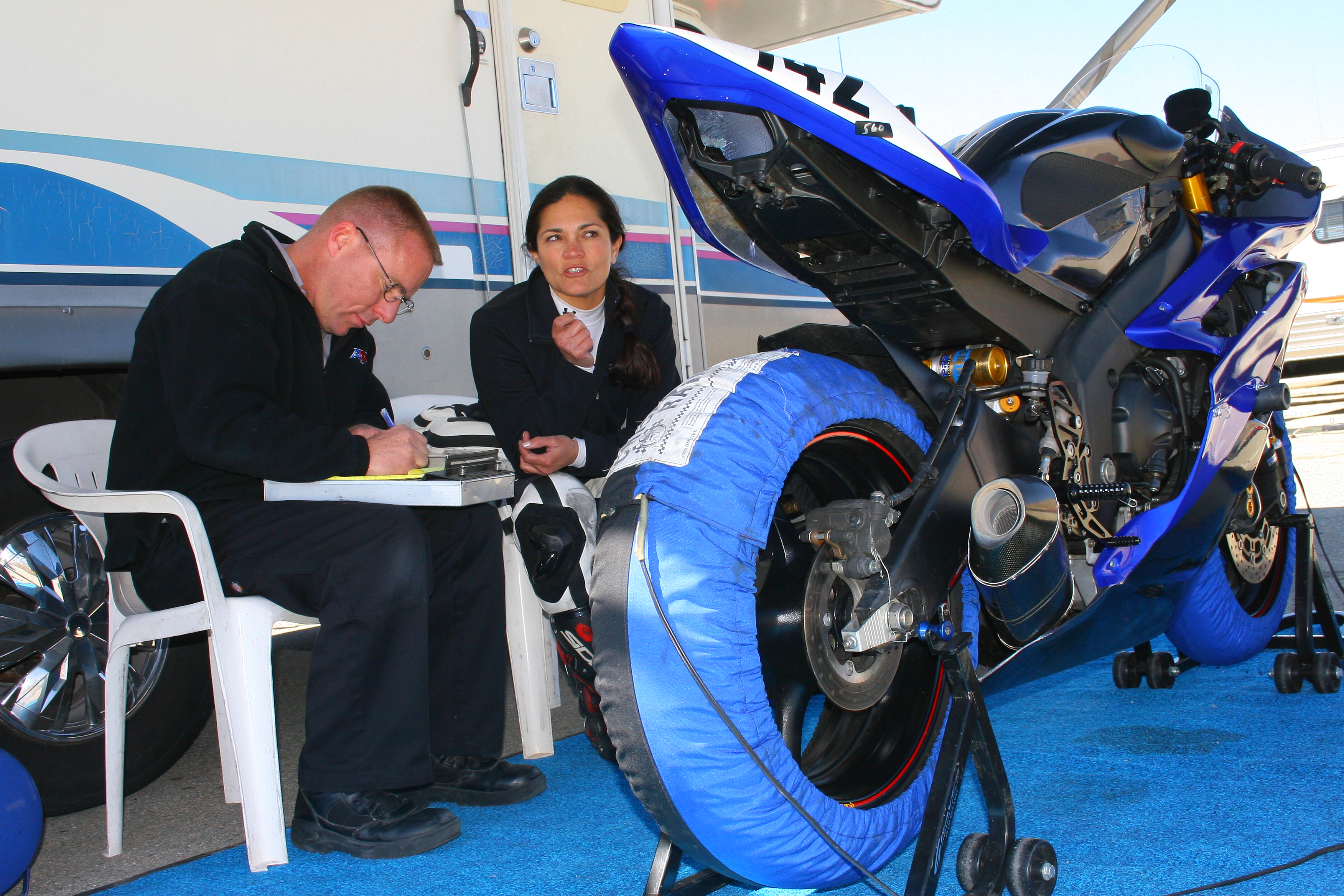 The pressure was on for me this past weekend for the AMA races at Cal Speedway. I was asked to be Elena Myers Crew Chief on her RoadracingWorld.com RMR Suzuki team.