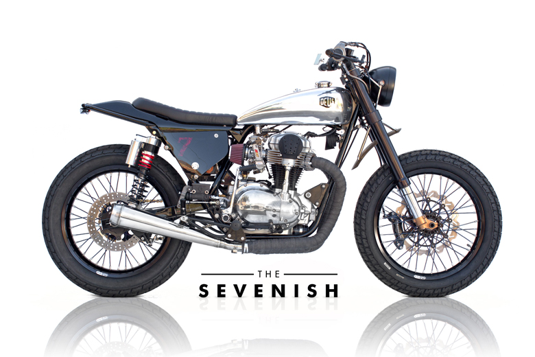 Kinda, sorta, maybe the seventh bike to roll off the rack in Woolie’s Workshop, The Sevenish is the latest bike that’s been brought into being by Deus Ex Machina’s US Motorcycle Design Director, Michael Woolaway. A bit about the name—Although the total number of finished builds out of Woolies Workshops numbers eight or nine, this bike has the very distinctive “007 Woolie” stamp pressed into its steel skeleton, meaning it’s a full frame-up, Deus Ex Machina manufactured, custom build: about as Deus as a bike can get. Combine that with the fact that the build was commissioned by motion picture helicopter pilot Fred North, who just happens to have done aerial film work on several Bond movies, and the name The Sevenish finds clearer focus. Don’t let the wishy washy nomenclature fool you, though. The Sevenish, much like its owner, is incredibly precise in its purpose. And it is without a doubt incredibly fun to ride.