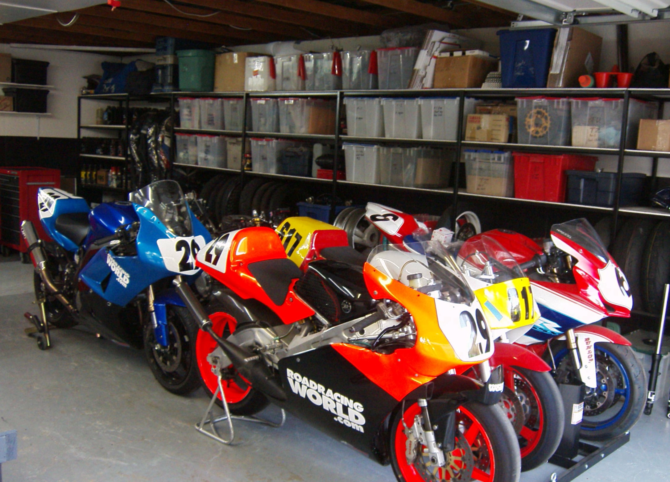The work on Graham’s RC-51 is done. I rebuilt, re-sprung and re-valved the forks and shock. He gets his old springs back along with the old seals and the cap that covered the shock air valve. I exchange the valving washers so they don’t go back. Shipping the old oil back would be a hassle and I’ve yet to find anyone who wanted it. I paid extra to get good LE stickers that peel off without leaving a mess, that way you can remove them if you like without getting mad at me.
