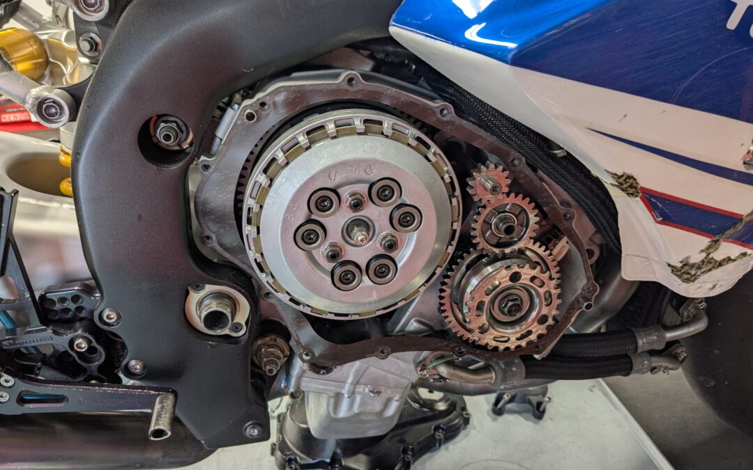 This is the OEM clutch in Cookie. For those of you who don’t know, Cookie is an ’09 GSXR1000 Superbike. She is mostly blue and her full name is “Cookie as in Monster.” As you can see, this is a slipper clutch. I race motorcycles because they are challenging. Therefor I don’t use a quick shifter, auto blip, ABS, traction control, launch control, wheelie control or any other rider aids. When I want the clutch to slip on the backshift, I use the clutch lever. I have disabled the slipper function of this clutch. This April, Cookie and I will be at Buttonwillow with American Federation of Motorcyclists (AFM) and Willow with AHRMA (American Historic Racing Motorcycle Association). Our combined age will be 80 years.